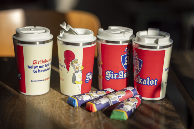 Er valt nog een heleboel te verzinnen met de karakters. Sybren had nooit verwacht dat het zo zou uitgroeien. We hebben inmiddels allerlei artikelen voorbij zien komen: chocolade wikkels, Koffiemokken en Sir Askalot verschijnt bij sommige organisaties op het koffieapparaat.